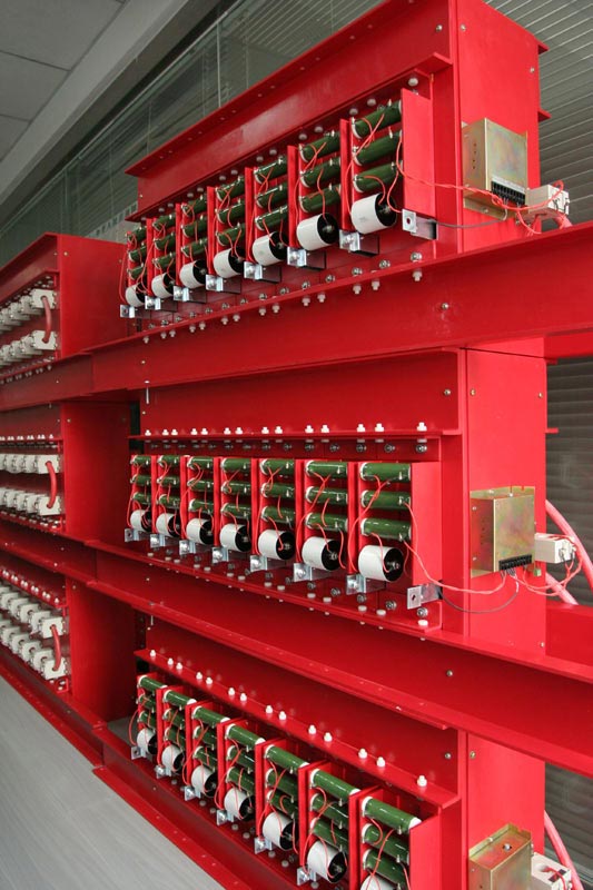 高壓熱管散熱結(jié)構(gòu)10kV和6KV高壓晶閘管閥組采用單相臥式,三相疊加立式結(jié)構(gòu),結(jié)構(gòu)緊湊,占地面積小。10KV 和6KV的高壓晶閘管閥組串聯(lián)一定數(shù)量的晶閘管;其它附件還有散熱器、均壓/阻尼電容器和電阻器、高電位觸發(fā)板和支撐架等。