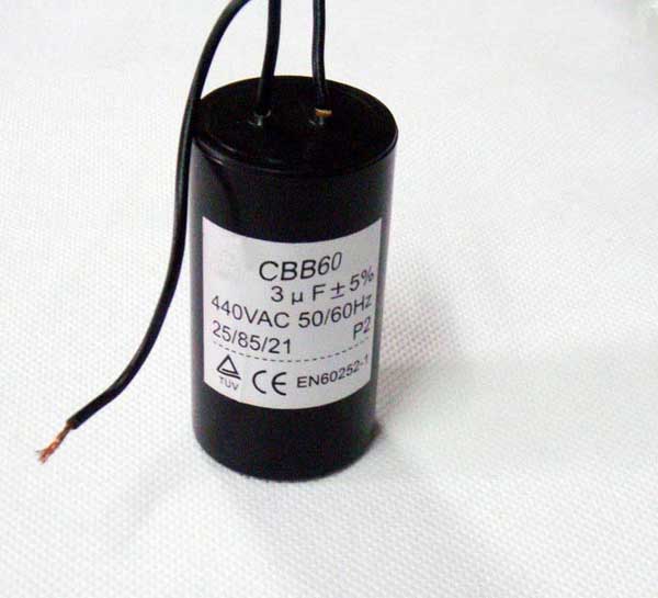 1, use: suitable for frequency 50HZ (60HZ) AC power supply of single phase motor start and run. 2, the scope of application: air conditioning, refrigerators, washing machines, electric fans, ovens, etc.. 3, characteristics: the use of excellent performance of polypropylene film to do the media, in the vacuum conditions of evaporation on the metallization layer as the electrode; product capacity is stable, low loss, high pressure, with good self-healing. Lead wire products and electrical equipment to connect more convenient. 4, technical parameters: Capacity range: 2 mu F mu F~130; Rated voltage: 250~500Vac (50/60HZ); Capacity deviation: + 5%; Loss tangent: TG = 0.002 (100HZ) small. Climate category: 25/70/21.